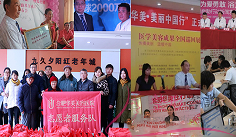 學(xué)術(shù)交流:合肥華美一直秉承“專業(yè)、美麗、健康”的理念。致力于通過學(xué)術(shù)論壇、技術(shù)交流、醫(yī)生個(gè)人會診等形式,將多元文化(人體美學(xué)、運(yùn)動美學(xué)等)與現(xiàn)代美容外科技術(shù)融合。此外,合肥華美還主辦和參加了多次整形外科領(lǐng)域的重要會議和論壇,如第七屆華東六省一市整形外科學(xué)術(shù)交流會、第三屆激光美容與微創(chuàng)抗衰老學(xué)術(shù)研討會等。公益活動:自成立以來,華美一直熱衷于公益事業(yè):關(guān)心雅安地震、華美愛心捐贈;梅美星協(xié)助耳聾兒童;Huamei公益助燃王母姑媽王;Huamei愛心捐贈給玉樹災(zāi)區(qū);合肥華美新年暖冬公益活動等,得到了社會的認(rèn)可和好評。